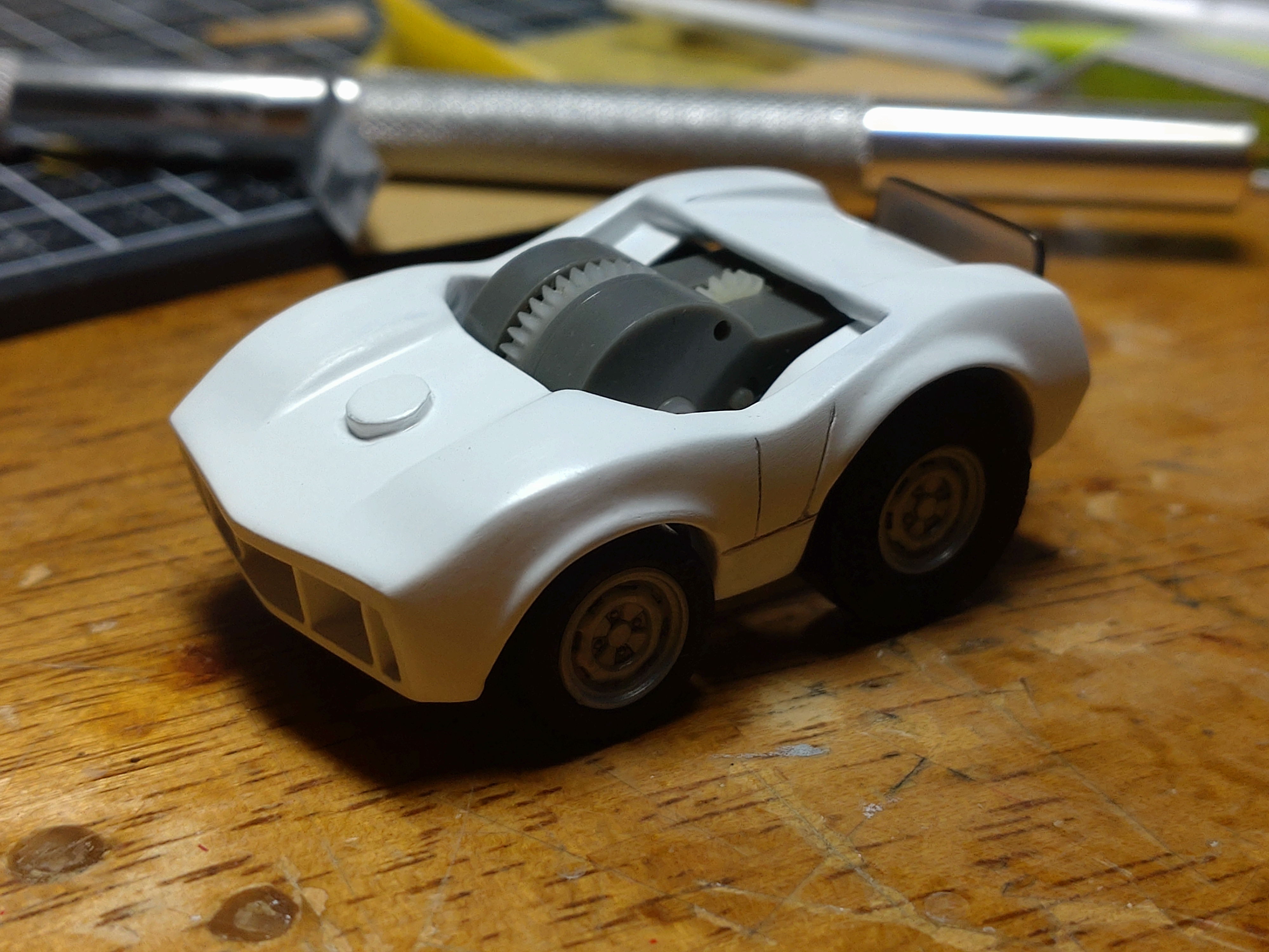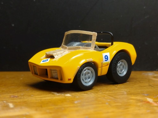 チョロQっぽく、オーバーにデフォルメするために、前の画像からフロントの骨組みに手を加えていたりします。(少しハの字にした)