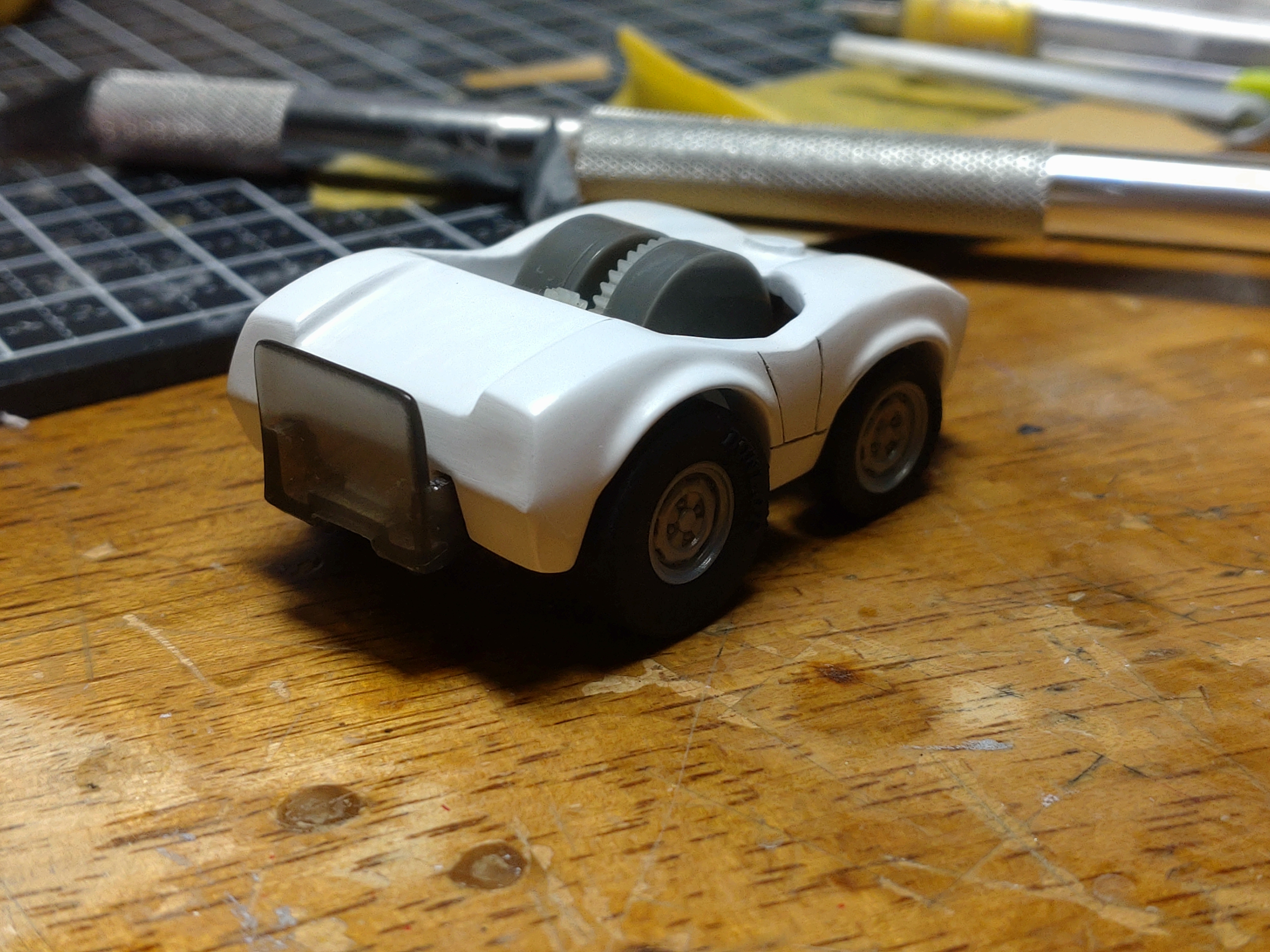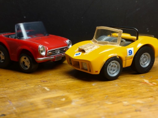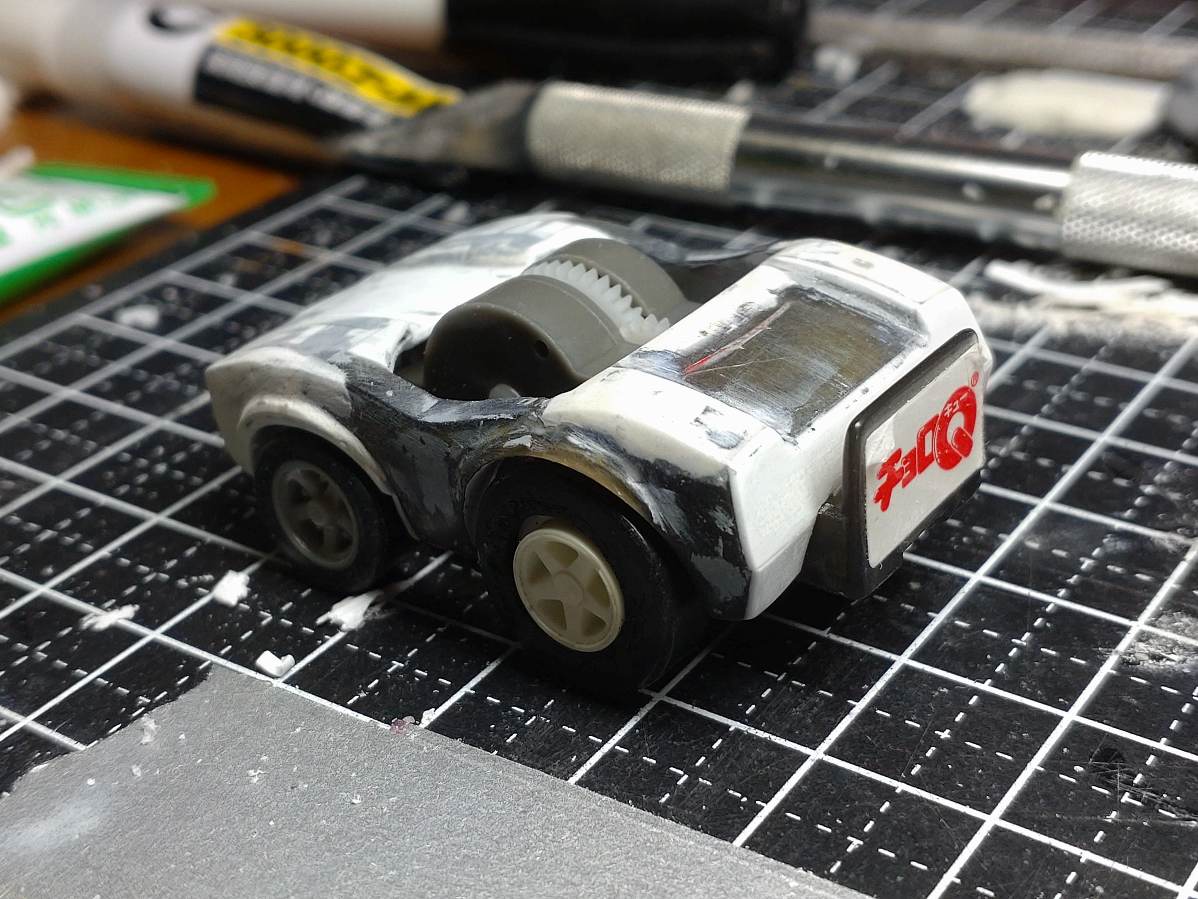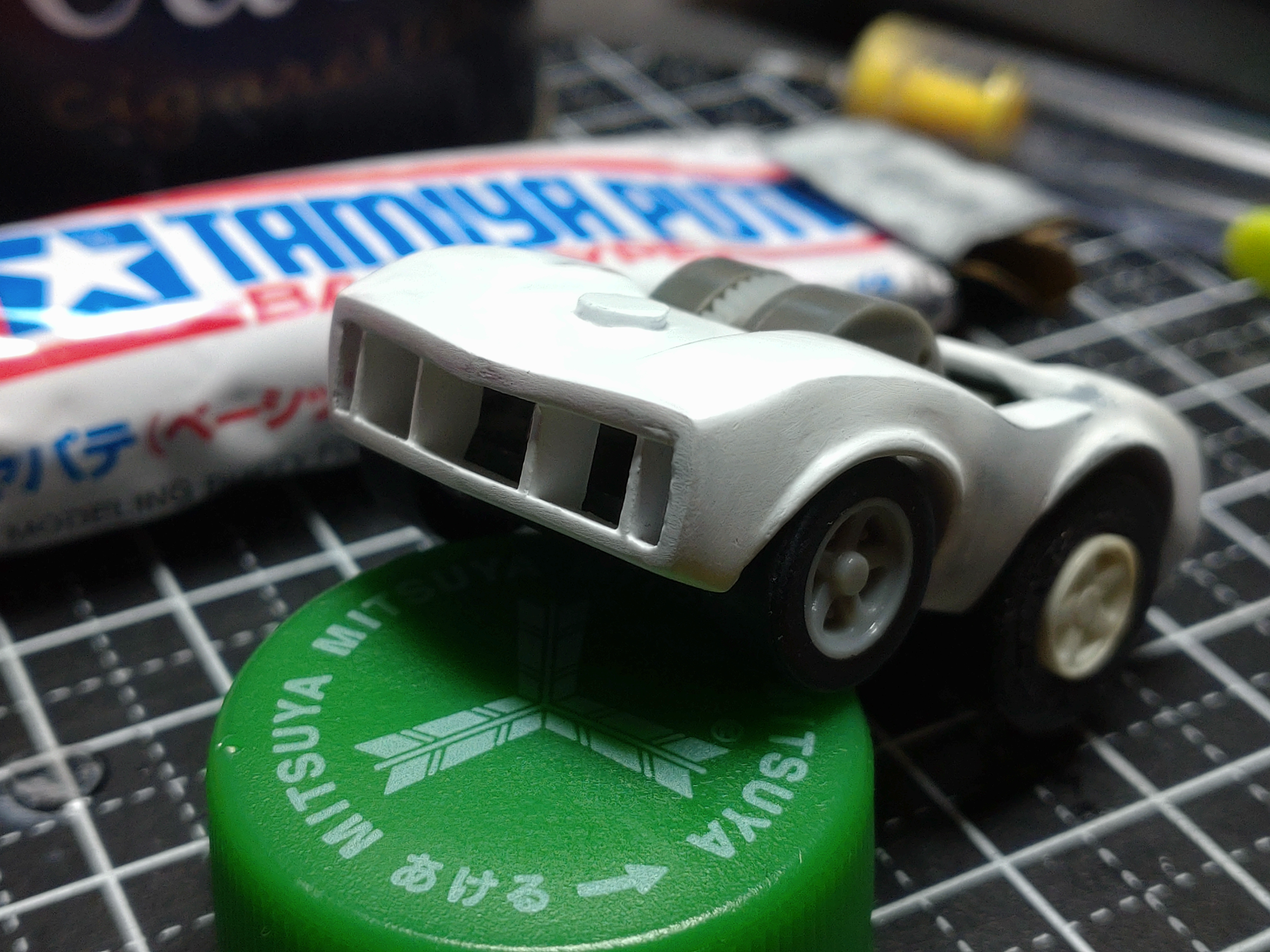 と、いうわけで製作編です。ベース車両はミスドのオマケでついてきたコスモスポーツ。
