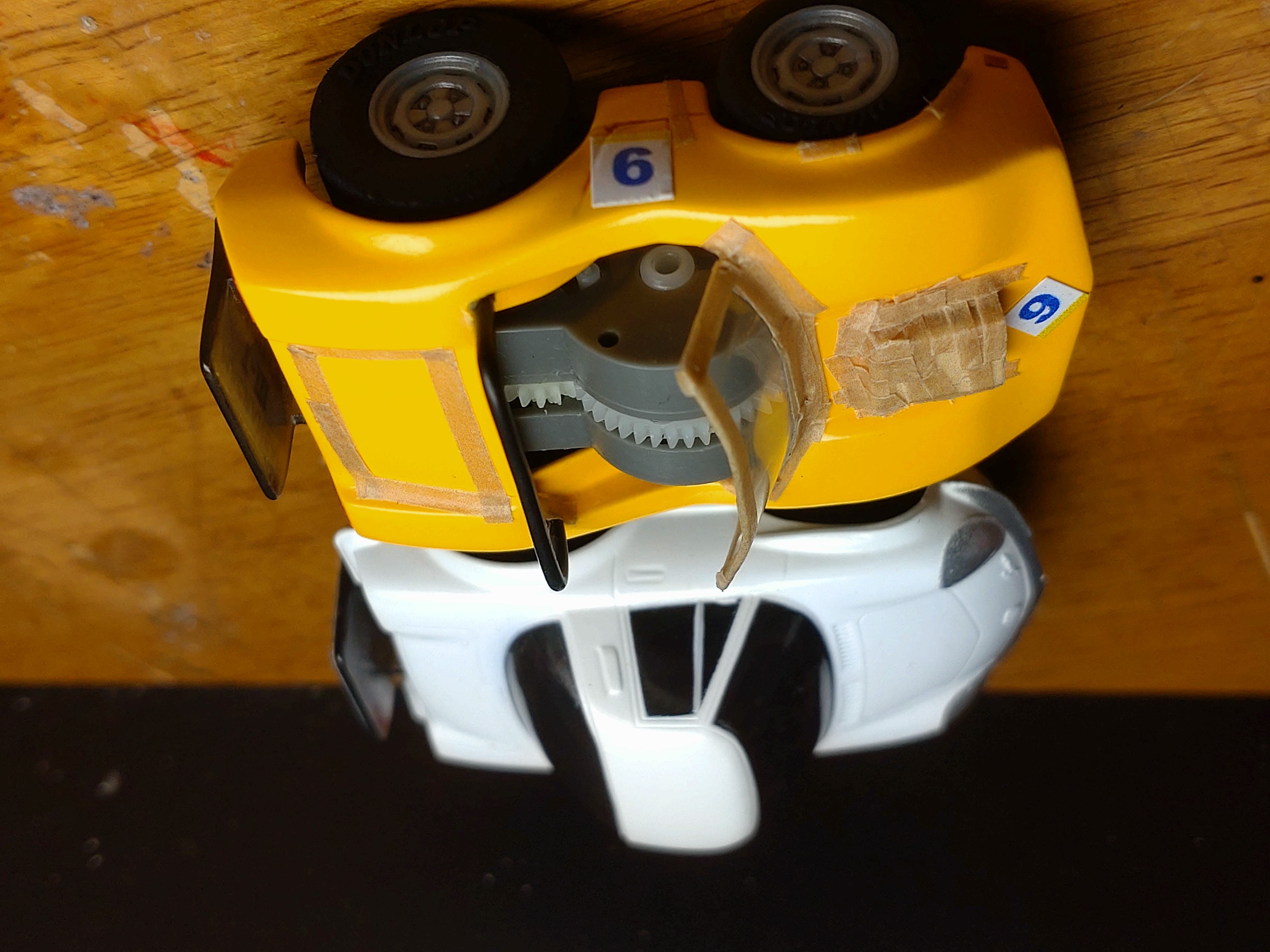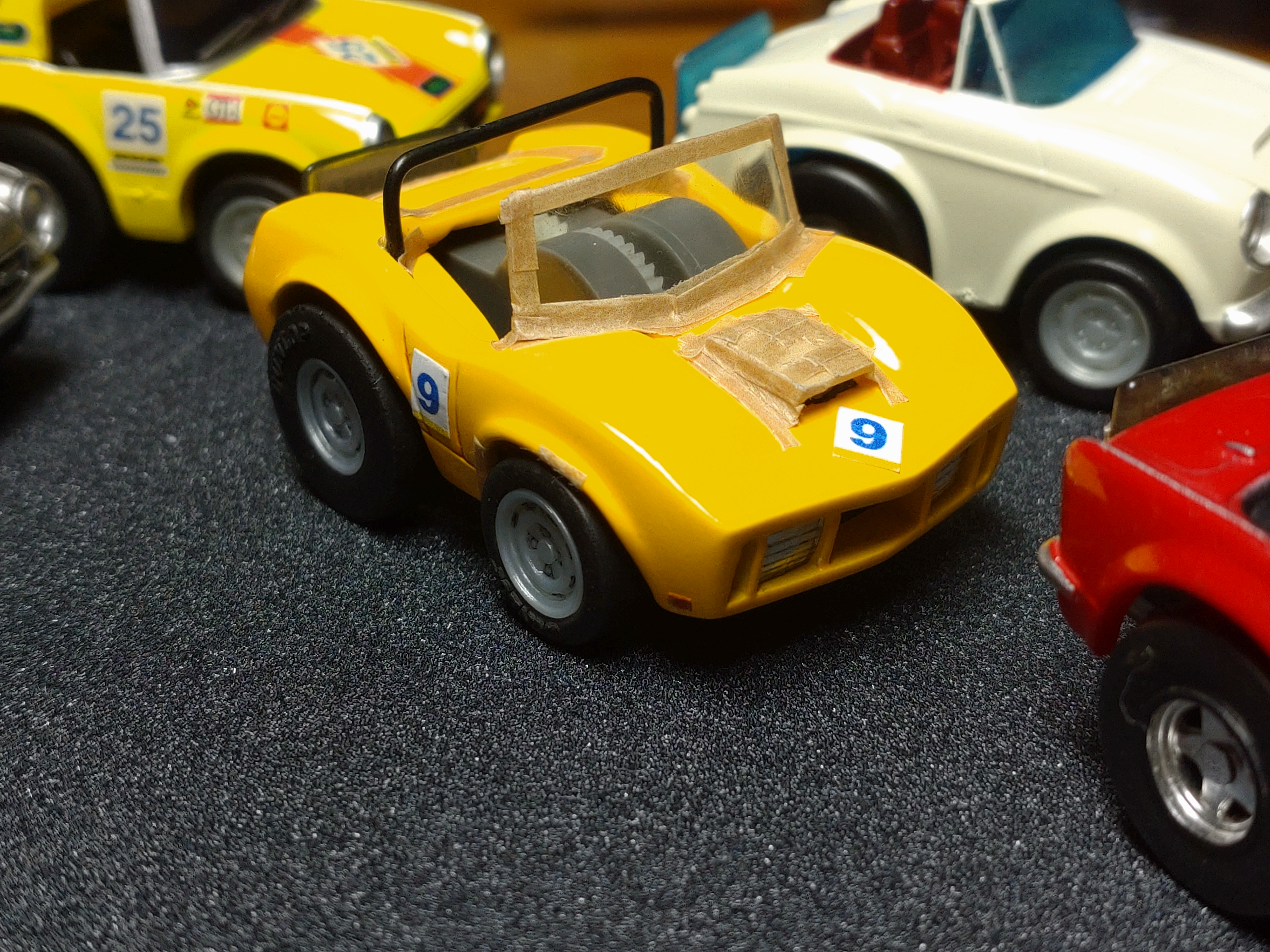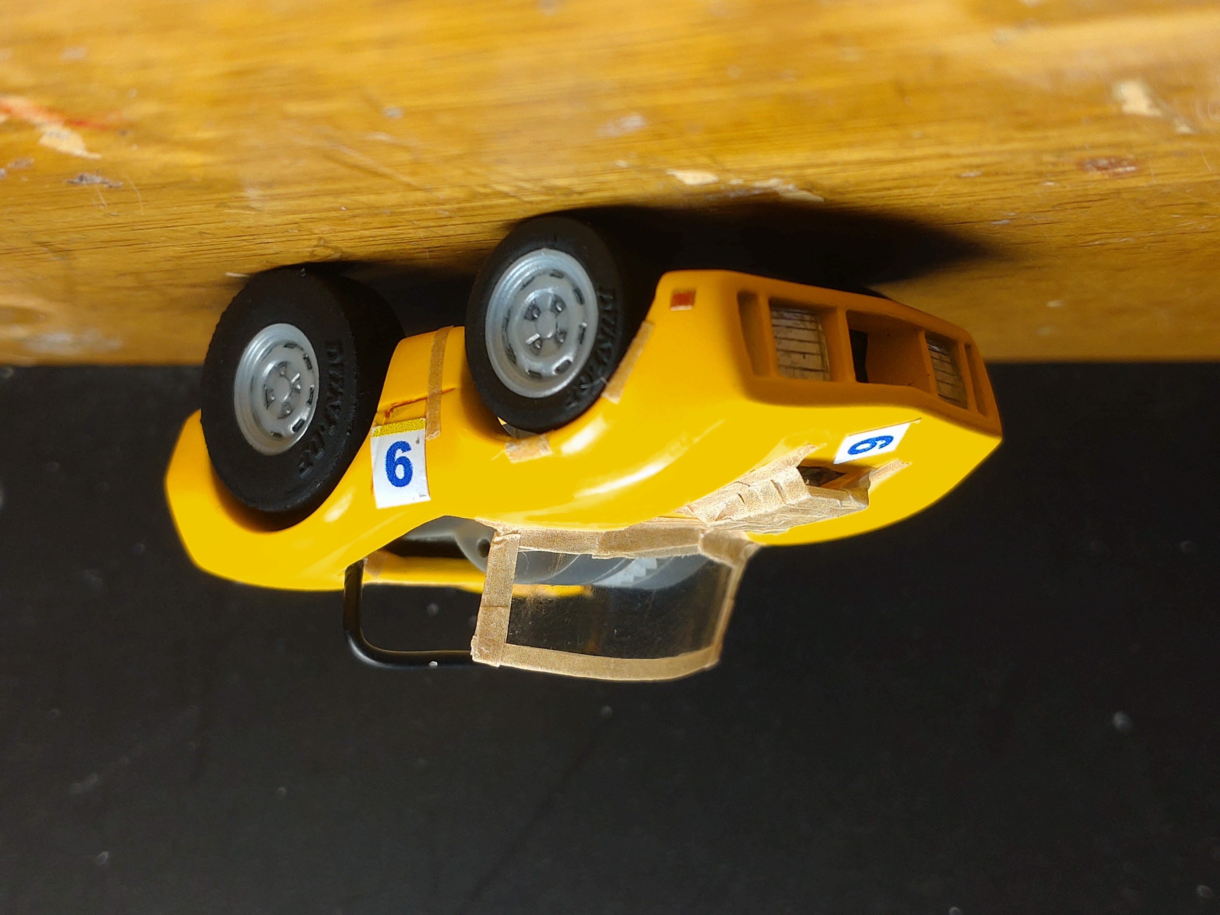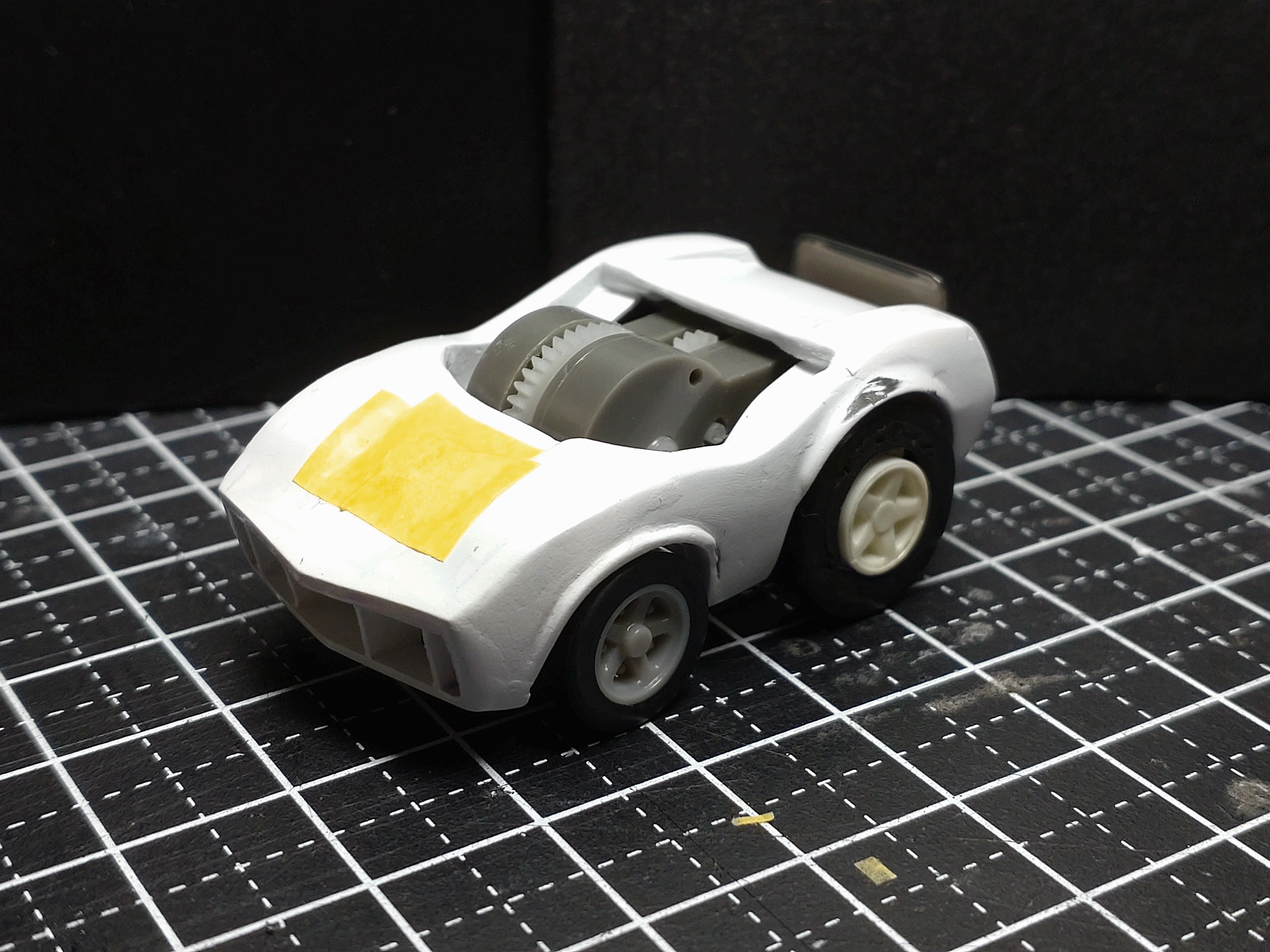 ちなみに、フロントのマスキングテープは、ベース車両から移植したネジ穴の仮止めの為の物です。